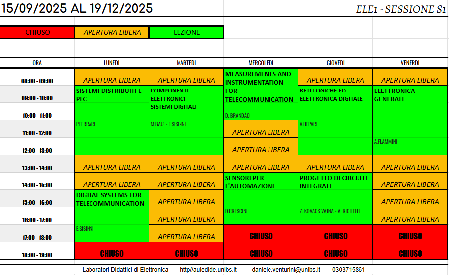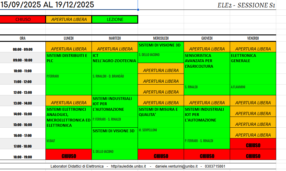Orario Laboratori Didattici in vigore dal 15 Settembre 2025 al 19 Dicembre 2025**** CONTROLLARE LE DATE DEGLI ESAMI (Nel caso di Esami i Laboratori restano chiusi)